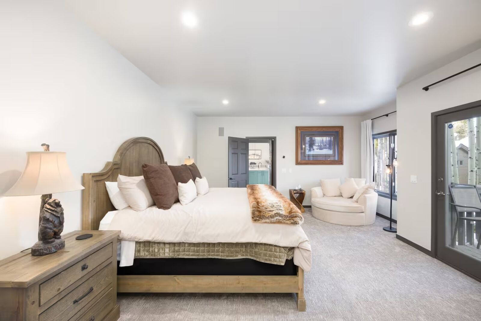 This Breckenridge home sleeps eight across four king-bed suites, each with its own bathroom, making it a comfortable choice for families or groups. Recently updated with new furnishings, it combines the ease of ski-in/ski-out access — just a short walk to the Burro Trail, which connects to the Peak 8 SuperConnect lift — with the convenience of a free shuttle that stops at the driveway every 15 minutes. After a day on the mountain, unwind in the private hot tub or gather in the spacious living areas. Breckenridge Ski Resort covers nearly 3,000 acres over five peaks, with everything from gentle beginner runs to challenging high-alpine bowls. When you’re not skiing, downtown Breckenridge is only a five-minute drive away, offering Victorian-era streets lined with restaurants, breweries, and shops — along with plenty of après-ski spots. Wildlife is common in the neighborhood, so it’s not unusual to spot deer or even moose from the property.