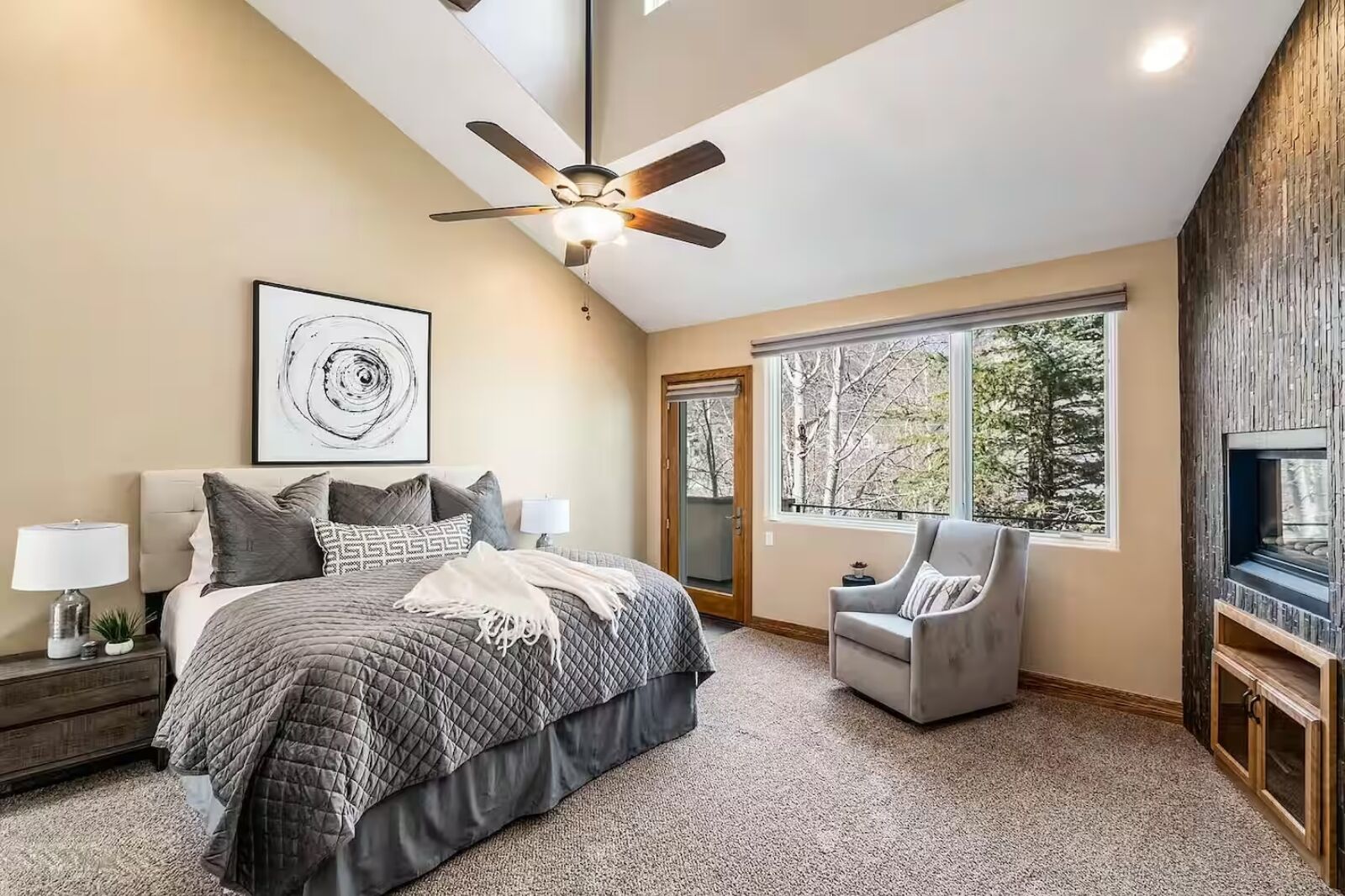 This is a relatively new listing, but it’s already a top one percent listing on Airbnb — which means it’s got a spotless record. Less than a minute from the Silver Strike ski lift, this luxury condo is one to bookmark. From this location, you can beat the crowds on a powder day, as many will be getting on the mountain at Snow Park or Silver Lake. And you can enjoy mountain views from floor-to-ceiling glass windows, which offer breathtaking views from every room. You’ll also have access to resort-like amenities, including an outdoor spa pool, gym, ski valet, bowling alley, and après-ski. To top it off, 100 percent of the condo’s energy is generated by wind and solar — so it’s also a sustainable option.