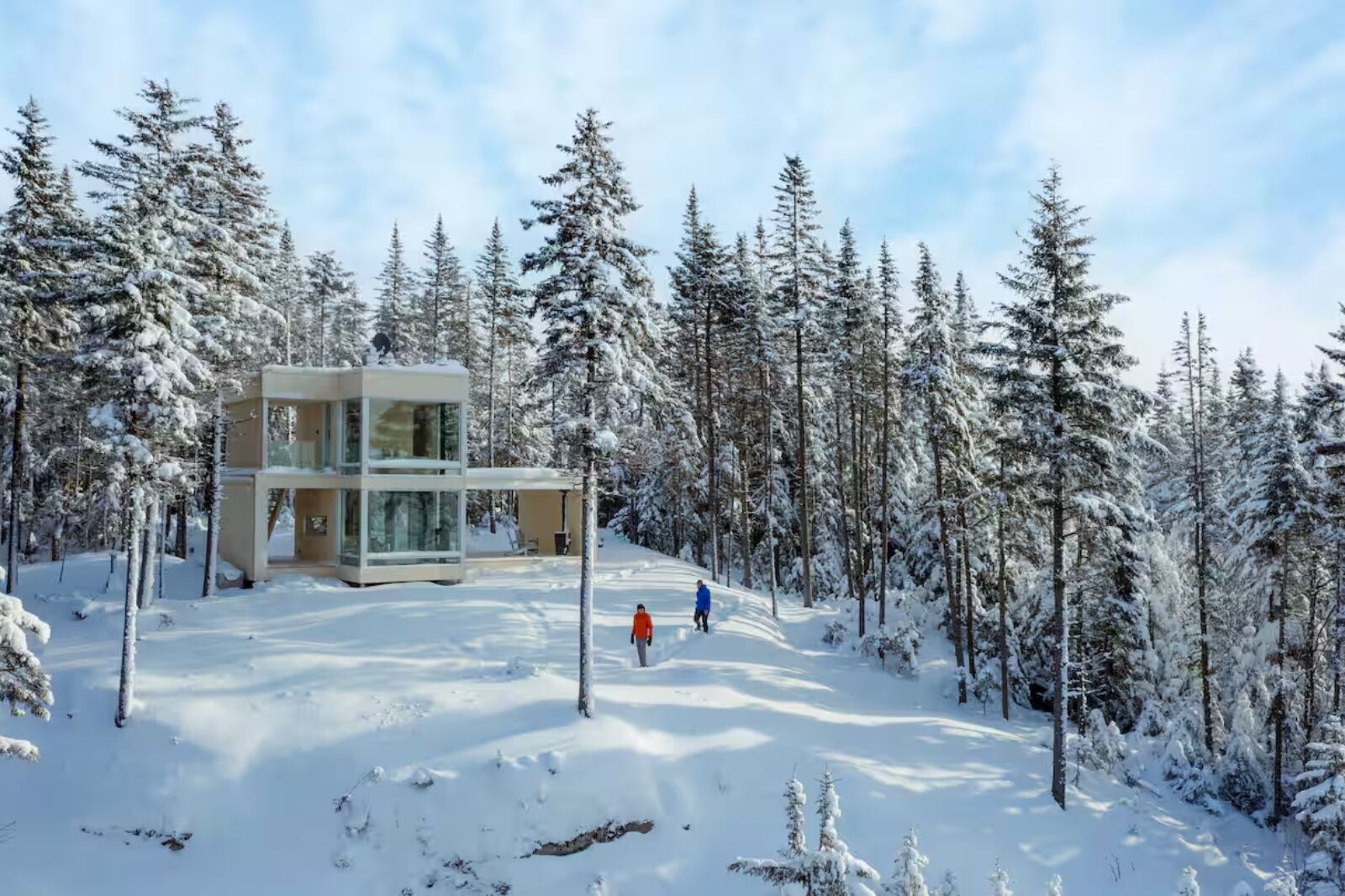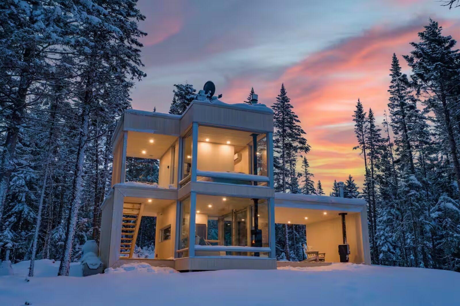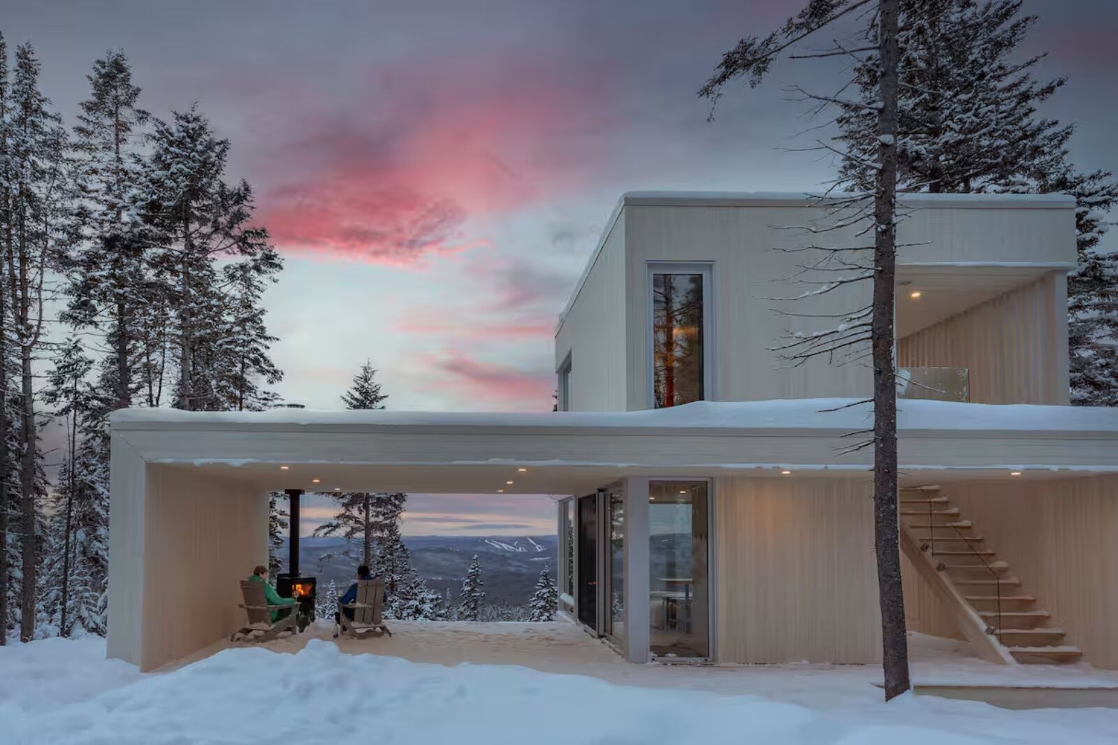 This minimalist rental for couples and small families immerses you in Canada’s boreal forest with views over Laurentian Park. Snow-white and creamy interiors are interrupted only by the glow of the fireplaces. Visit in winter for snowshoeing, cross-country skiing, and fat biking out the backdoor — while evenings can be spent on the terrace, nursing hot chocolate as the sun sets.