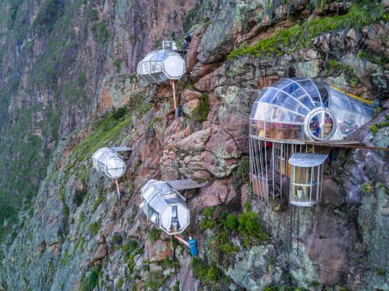 Many adventurers in Peru make nearby Cusco their home base. Local transport comes pre-arranged for the hour and forty-minute ride deep into the valley. You’ll find three capsules clinging to the side of a sheer rockface with an intricate network of cables that attempt to reassure your confidence in their construction. Not to worry, though, because the pods are all crafted out of aerospace aluminum and weather-resistant polycarbonate to ensure you don’t hear a single creak or feel a slight rattle even in the valley’s super windy conditions.
