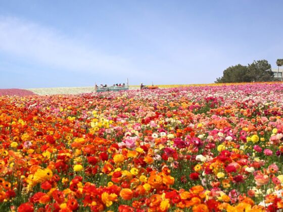 Open each spring, the 50 acres of technicolor at The Flower Fields at Carlsbad Ranch are among the most popular seasonal destinations in California. Rows of giant Tecolote ranunculus bloom across the hills overlooking the Pacific, creating dense bands of color that have become a hallmark of Southern California spring. The fields trace their history back to the 1920s, when early settler Luther Gage began cultivating ranunculus in the area.