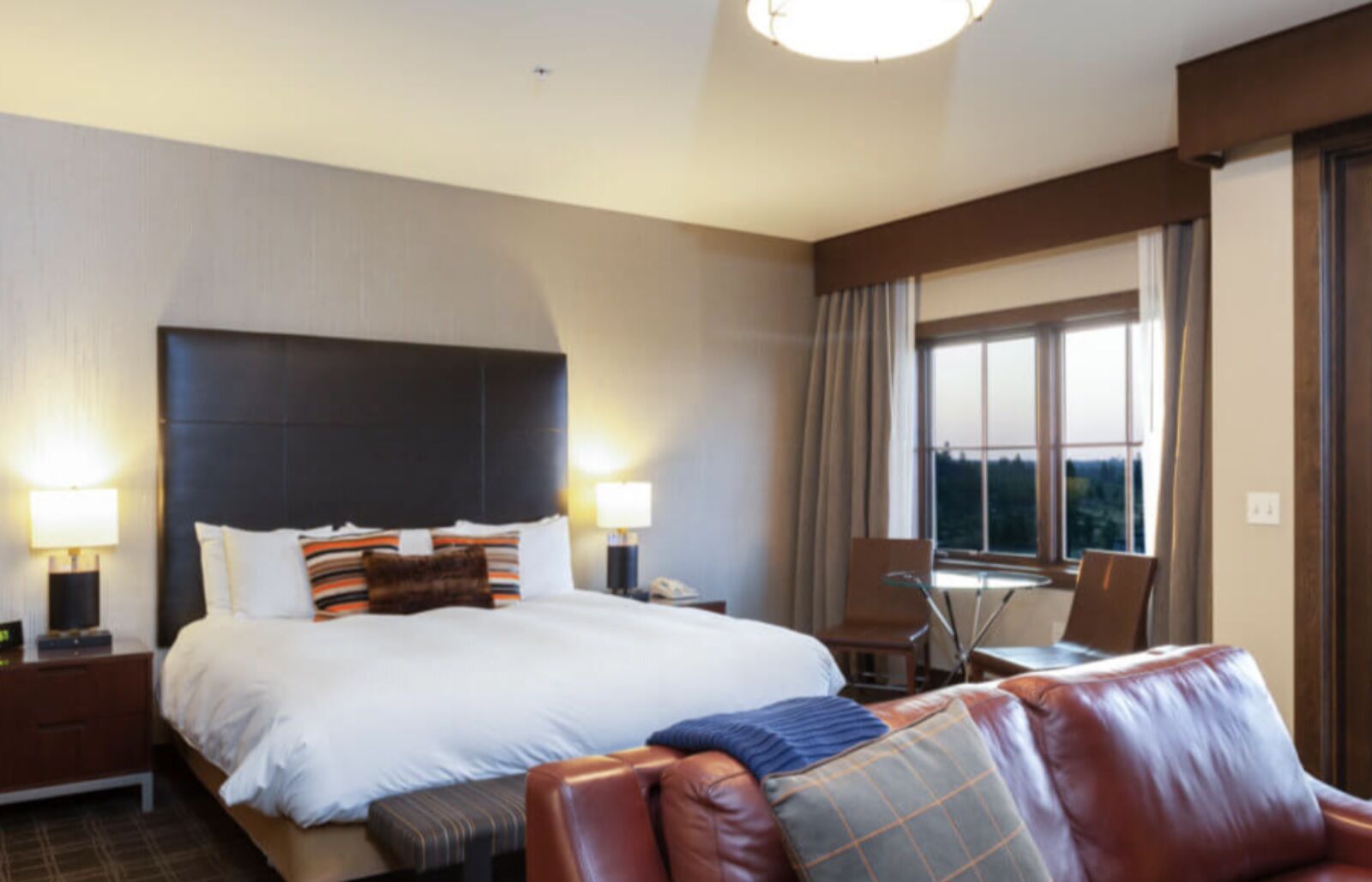 An expansive but quiet and peaceful property, Tetherow Resort sits just on the edge of Bend, Oregon, in a spot that feels directly connected to the forest. At 700 acres, it’s a large property, but its forested layout feels more like an intimate escape than a sprawling megaplex. Hotel accommodations are the most approachable way to stay at Tetherow, though homier short-term rental-styled properties also available onsite.