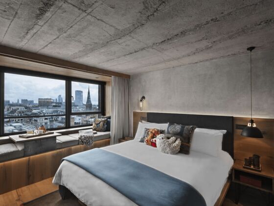 The Treehouse guest experience unites the three pillars of a London getaway: cracking food, epic cityscapes, and quirky activities. Simply wandering around this boutique hotel brings a childlike glee; the 15th-floor lounge is decked out with makeshift arrows and bird houses that may remind you of the dens you built as a kid. Mason jars filled with rogue buttons and jigsaw pieces feel like you could be at a family home.