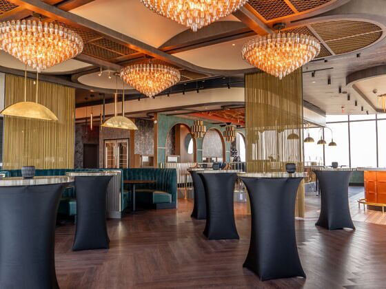 over 500 guest rooms, including 50 deluxe suites. The property added a second tower, a new fitness center, and a spa on the 15th floor. There are six meeting rooms and three expansive ballrooms, accommodating gatherings from 50 to 2,200 guests. Nightly rates vary by room type and season, with deluxe king rooms averaging $189 per night and luxury “Chairman” suites around $689 per night.