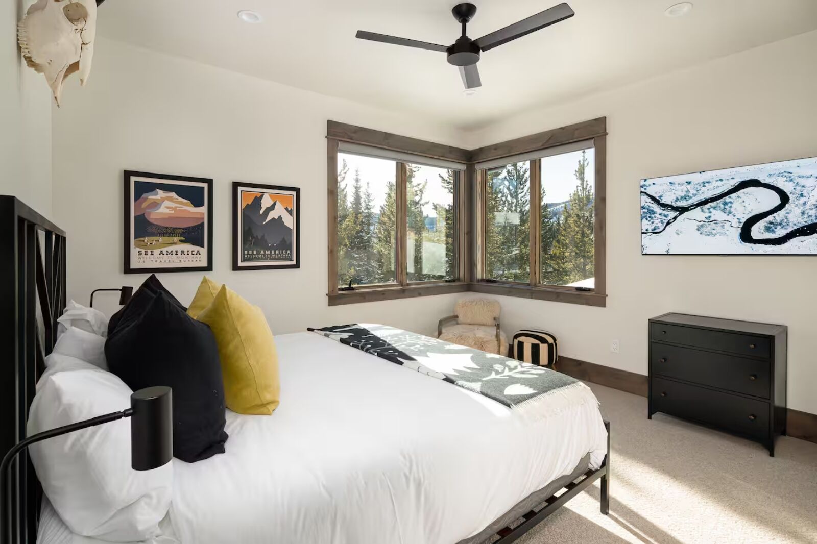 This Breckenridge home sleeps eight across four king-bed suites, each with its own bathroom, making it a comfortable choice for families or groups. Recently updated with new furnishings, it combines the ease of ski-in/ski-out access — just a short walk to the Burro Trail, which connects to the Peak 8 SuperConnect lift — with the convenience of a free shuttle that stops at the driveway every 15 minutes. After a day on the mountain, unwind in the private hot tub or gather in the spacious living areas. Breckenridge Ski Resort covers nearly 3,000 acres over five peaks, with everything from gentle beginner runs to challenging high-alpine bowls. When you’re not skiing, downtown Breckenridge is only a five-minute drive away, offering Victorian-era streets lined with restaurants, breweries, and shops — along with plenty of après-ski spots. Wildlife is common in the neighborhood, so it’s not unusual to spot deer or even moose from the property.