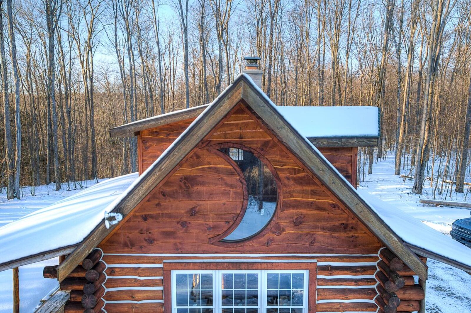 Set on 20 wooded acres in Potter County, this one-bedroom cabin serves as a base for both winter sports and some of the clearest night skies in the eastern US. From December through March, access is by ATV, and the Potter County Snowmobile Club maintains trails just over a mile away. Cherry Springs State Park — designated an International Dark Sky Park — is about a 25-minute drive and draws serious astronomers for views of the Milky Way, even in the coldest months. The porches overlook the ridge, and evenings can be spent by the wood-burning stove inside or the firepit outside, with stacked firewood provided.