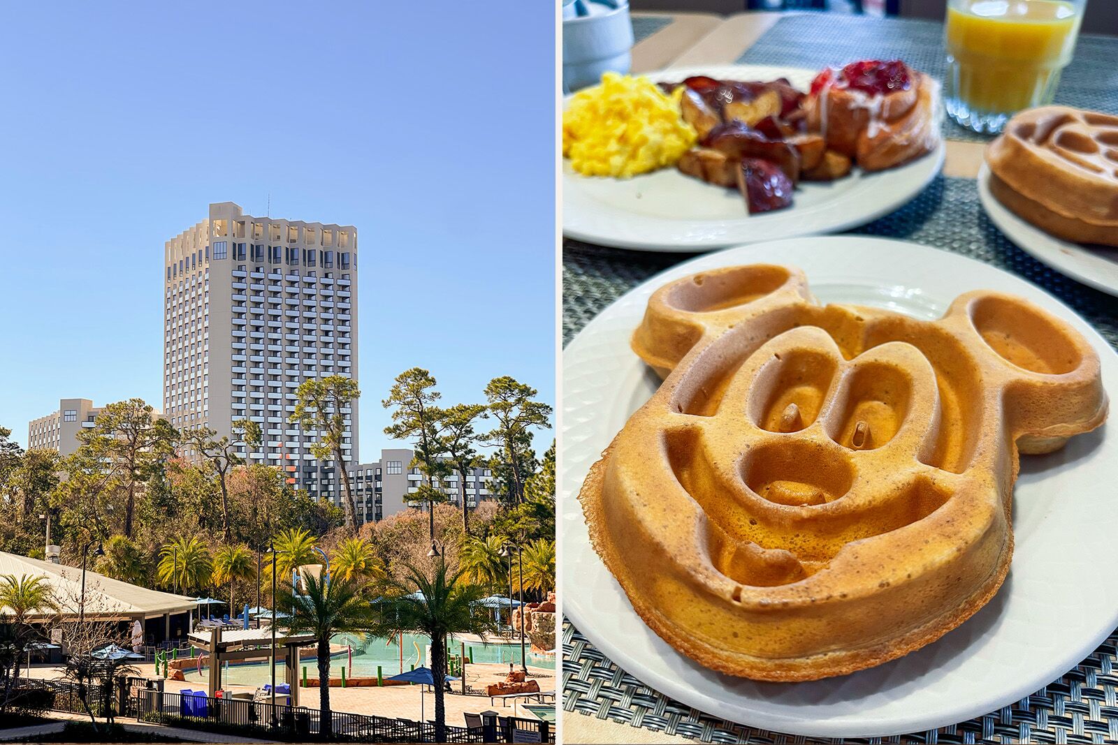 Another amenity highlight is the elevated walkway outside, built in 2015 and located right next to the hotel, that leads directly to Disney Springs. While dining at Disney Springs can be pricey, the resort offers two reasonably priced restaurants: LakeView Restaurant, with Mickey Mouse pancakes that I enjoyed the two mornings I was there, and Oasis Restaurant by the pool, serving dishes like the Rodney Scott Steak Sandwich, which hit the spot after traveling on my first day.