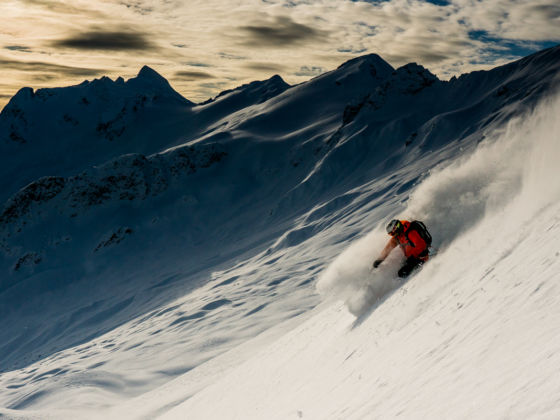 Getting out of the helicopter on top of an alpine ridge is hardly serene: the echo of the blades reverberate in my chest and the “rotorwash” propels wind and snow into my face. In that loud chaos, everyone grabs their gear and the heli takes off in an intense blast of snow and wind, leaving the group looking down at 1500 meters inversion in the valley bottom.